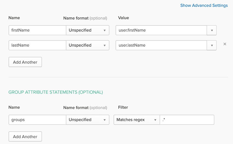 Choose any desired filter to limit the groups that will be synchronized to Flexera One. Use the Matches regex = .* filter to send all Okta group memberships.