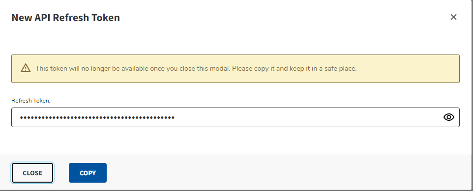 - Click Copy to copy the refresh token and then save it to a secure location for future reference.