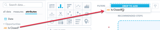 1. Drag a measure () or an attribute () from Data Catalog onto any drop zone to visualize it.