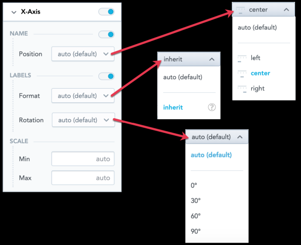 • To change the axis name position, select an option in the Position dropdown list.