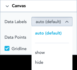 • To show or hide the data labels, select the option in the Data Labels dropdown list.