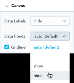 • To show or hide data points online, area, or combo charts, select the option in the Data Points dropdown list. If you select auto , Data Explorer may hide the data points if there are too many.