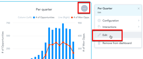 1. On your dashboard, click the three dots icon in the top right corner of the insight.