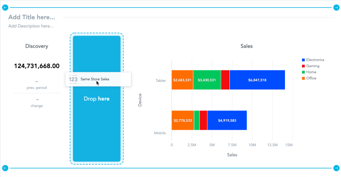 2. The row height is automatically adjusted to the height of the highest widget in the row. For example, if you have a headline widget and add a column chart, the height of the headline adjusts to the height of the column chart.